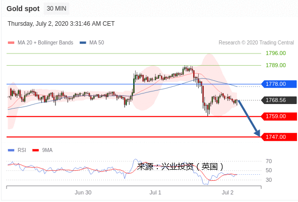 交易策略: 在 1778.00 之下,看跌,目标价位为 1759.00 ,然后为 1747.00 。