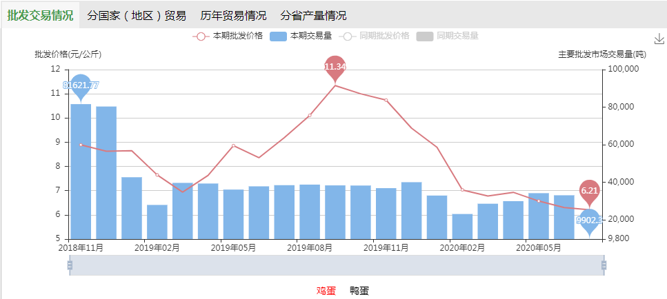 根据农业农村部信息中心公布的数据,白条猪肉批发价格已经从5月低点40.64元/公斤,上涨了近7元/公斤,涨幅约16%。受此影响,主要批发市场交易量明显下滑,6月较5月下滑7.5%,预计7月还会进一步下降。
