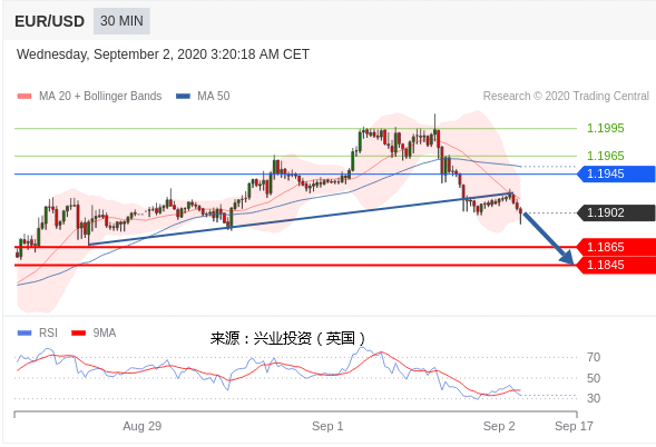 交易策略: 在 1.1945 之下,看跌,目标价位为 1.1865 ,然后为 1.1845 。