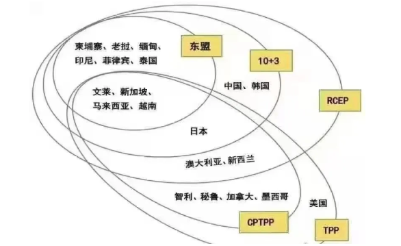 区域全面经济伙伴关系协定(英文:Regional Comprehensive Economic Partnership),简称RCEP。RCEP谈判由东盟10国在2012年11月正式发起,邀请中国、日本、韩国、澳大利亚、新西兰和印度6个国家参加,历时8年,其中印度因“有重要问题尚未得到解决”在2019年退出谈判。