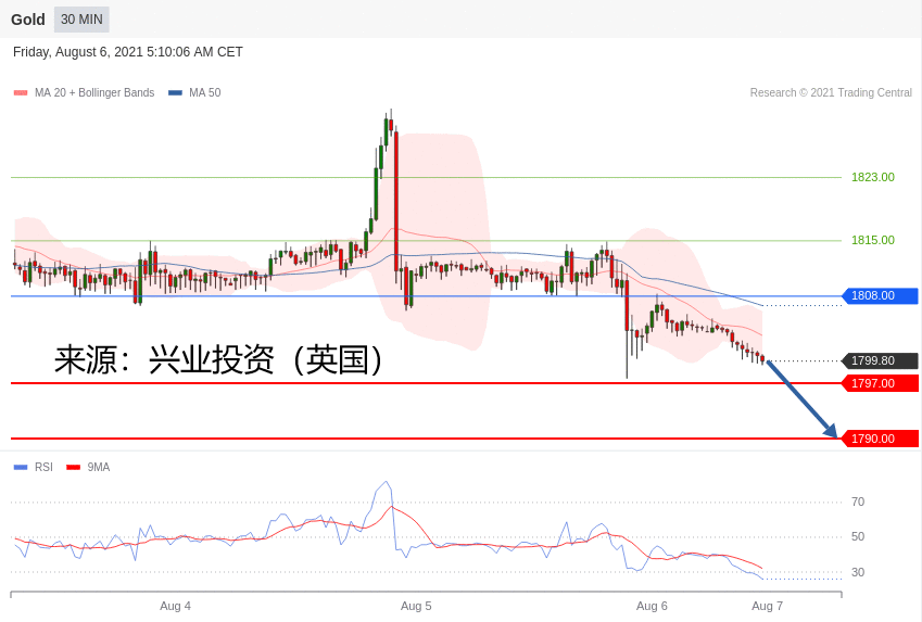 备选策略:在 1808.00 上,看涨,目标价位定在 1815.00 ,然后为 1823.00。