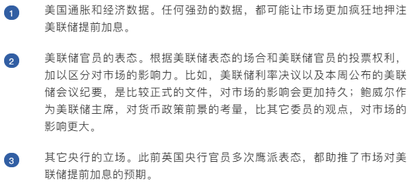 未来,市场对美联储加息预期的变化,仍将是推动市场的主线。从最近市场的反应来看,市场预期可能受到以下因素干扰: