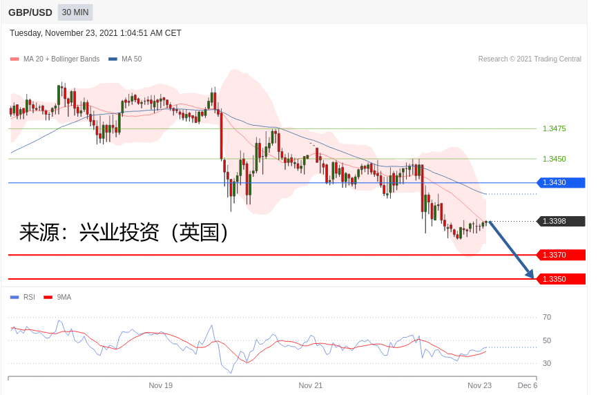 交易策略:在 1.3430 之下,看跌,目标价位为 1.3370 ,然后为 1.3350 。