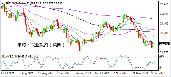 日图跳空高开测试下行的10日均线,缺乏上行动能。4小时图短线反弹势头维持完好,但随机指标熊背离。小时图隔夜跳空高开后,维持在高位略偏强震荡,需要上破200小时均线才能打开进一步上行空间。日内建议关注22.40阻力表现决定进一步方向。