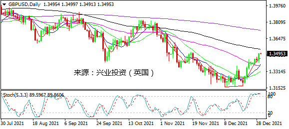 日图上行动能猛烈,维持在MA5上方将有望继续走高。4小时图短期均线向上发散,上行动能仍维持完好。小时图企稳1.3400上方,多头仍占主导。日内建议谨慎操作,关注1.3500一线阻力表现决定进一步方向。