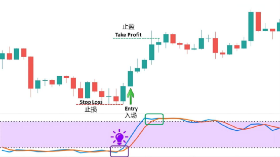 在交易实践中,有许多方法可以使用随机指标来进行入场交易。但是,为了使你的交易利润最大化和风险最小化,你需要确保有明确的止盈和止损点位。