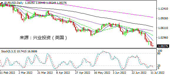 欧元跌至平价,表明当前市场对欧洲衰退的担忧盛行。至俄乌冲突以来,欧洲跟随美国对俄罗斯进行了多轮制裁,作为反制,俄罗斯掐断了欧洲部分天然气供应,导致欧洲天然气价格飙升。北溪一号非正常维护,引发市场对俄罗斯完全中断欧洲天然气的担忧,若欧洲被“断气”,欧元可能在平价水平下方进一步下跌。不过,就短期来看,平价有大量的买单,同时该档也是大部分空头的目标,这可能使得该档附近存在激烈的拉锯,甚至不排除反弹的可能性。