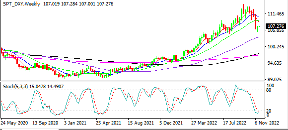 上周美联储官员继续发表鹰派言论,但美元指数仅在此前大跌后的低位进行整理,盘中最低下探105.34,最高触及107.27,当周收录螺旋桨阳线,结束了连跌四周态势。不过,分析师认为,美元指数仅是对早前跌幅进行修正,仅凭美联储老生常谈的所谓“鹰派”言论,不足以扭转美元指数跌势。