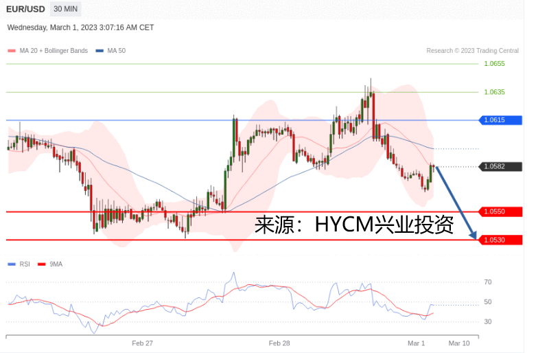 技术点评:只要1.0615阻力位不被突破,向下跌破1.0550位置的风险很高。