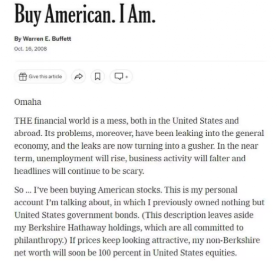 哦,对了,巴菲特当时还在纽约时报撰文《我在买美国股票》,力挺股市,提振市场信心。