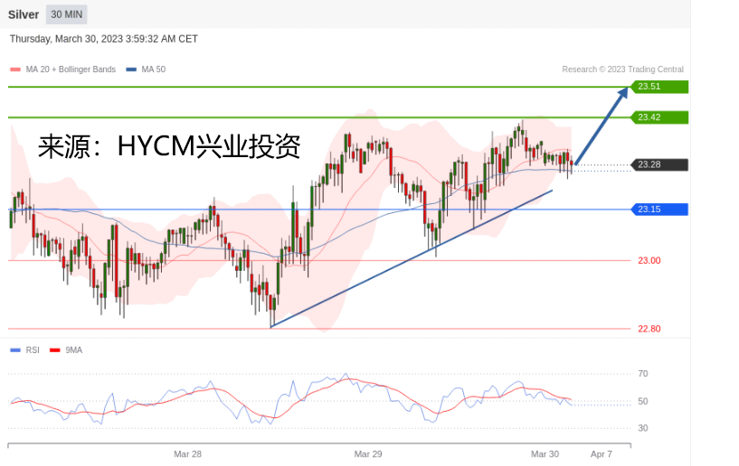交易策略:在 23.15 之上,看涨,目标价位为 23.42 ,然后为 23.51 。
