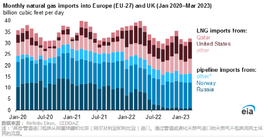 欧盟认为,即使欧洲设法在 2023 年保持创纪录的液化天然气进口量,2023 年仍需要将其消费量从 2022 年的水平再减少 550亿立方米,以稳定市场。