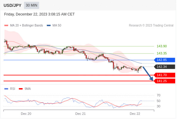 交易策略:在 142.85 之下,看跌,目标价位为 141.70 ,然后为 141.25 。