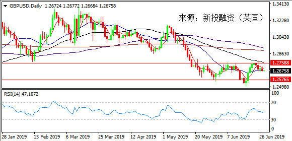 周四欧洲时段,欧元区公布的6月经济/工业/企业景气指数均不及预期,增加市场对欧元区经济放缓的担忧,抑制欧元多头。纽约盘中,美国公布的重磅数据显示,美国第一季度实际GDP年化季率终值为3.1%,略微不及预期增长3.2%。结果基本良好,但分析师预计美国二季度GDP增幅将降至1.8%,对美元的支撑有限,并未对欧元构成明显打压。只是今日开始的G20峰会之前,市场的情绪较谨慎,限制了市场整体的波动。隔夜欧元基本维持在1.1360附近窄幅整理,在震荡中收录一根下影线较长的小阴烛,收在1.1370,保持在三个多月高位附近震荡。今日重点关注欧元区6月CPI/美国5月核心PCE物价指数年率/6月密歇根大学消费者信心指数终值等。