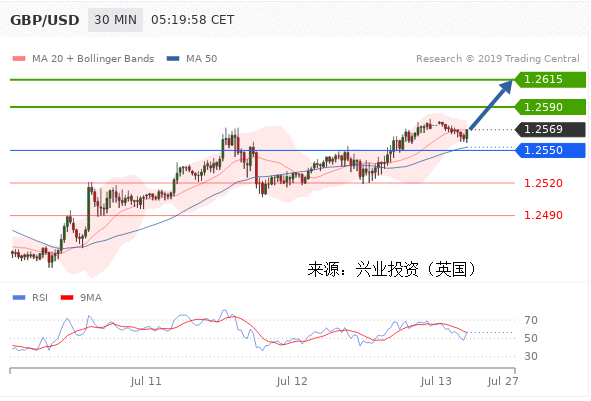 交易策略:在1.2550之上,看涨,目标价位为 1.2590,然后为1.2615。