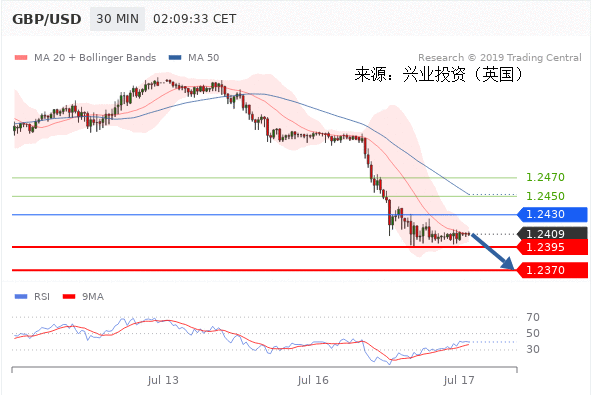 技术点评: 跌破1.2395位置,将会引发下跌至1.2370。