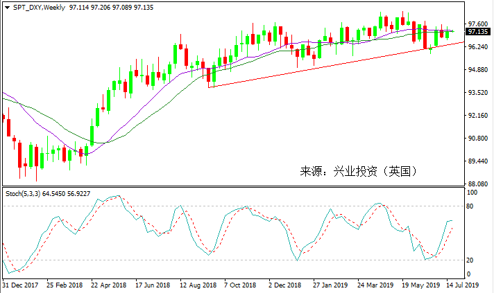 展望本周,市场的焦点周初将聚集在英国首相的最终人选,因为周二英国将公布新一任首相。目前来看,约翰逊成为新任首相的概率较大,但投资者务必谨防意外情况的发生,一旦结果与市场此前普遍预期情况相悖的话,恐将给金融市场带来巨震。此外,重点留意本周四的欧央行利率决议以及周五的美国第二季度GDP初值。继上周亚洲央行和南非央行纷纷宣布降息后,欧央行和美联储接下来将成为市场主角。由于德拉基的任期将在10月31日结束,这意味着他只剩下三次政策会议。当前他比较担心的是——2.6万亿欧元量化宽松、负利率和长期银行贷款未能持续重燃通胀。尽管目前市场预计欧央行将按兵不动,但人们更关注欧央行是否会为9月份降息和恢复量化宽松政策奠定基础。至于美国GDP报告,多数经济学家预测,GDP折合年率将为1.5%-1.8%。如果数据结果强劲,将表明美国经济仍较具有韧性,虽然不会改变美联储的降息预期,但至少会降低美联储大幅降息的预期。反之,如果数据表现疲弱,不仅会加剧市场对美国经济增长放缓的担忧,而且可能强化美联储大幅降息的预期。