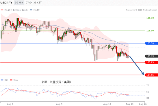技术点评:只要105.70阻力位不被突破,向下跌破105.25位置的风险很高。