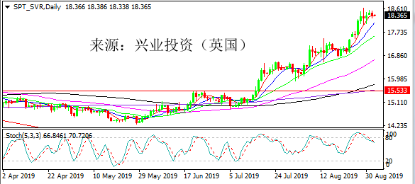 日图高位整理,随机指标从超买区域回落,短线有望下行。4小时图横盘整理,短线或有进一步回调空间。小时图继续在前期高点18.63下方受阻回落,但需要下破MA200才有望扩大跌幅。日内建议18.55下方做空,下破18.30跟进。